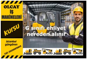 G sınıfı ehliyet 2021 yılı içinde Milli Eğitim Bakanlığı Tarafından yetkilendirilmiş Özel iş makineleri kurslarından alınabilir.